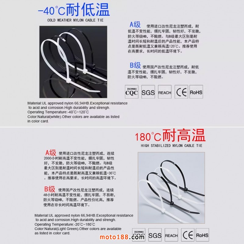 我公司專業(yè)生產(chǎn):優(yōu)質(zhì)尼龍扎帶、汽車扎帶,電瓶車專用扎帶,耐高溫扎帶,耐低溫扎帶,高低溫扎帶 等產(chǎn)品,也可來樣定制,擁有完整、科學(xué)的質(zhì)量管理體系。樂清市海欣塑料有限公司的誠信、實力和產(chǎn)品質(zhì)量獲得業(yè)界的認可。歡迎各界朋友蒞臨參觀、指導(dǎo)和業(yè)務(wù)洽談。
