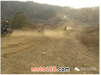 層土飛揚(yáng)的山路,高低起伏非常厲害,浮土較厚,給安全行車帶來隱患。大陡坡也非常的考驗(yàn)?zāi)ν械膭恿?。但ural 通過毫無懸念。