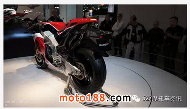 本田RC213V-S于2014年ECIMA車展首發(fā),該車基本上就是加了前大燈和后視鏡的Moto GP賽車。與其競賽版一樣,RC213V-S全車的外觀件均被碳纖維材質(zhì)包覆,并在競賽版的基礎(chǔ)上增加LED前大燈,而且全數(shù)字的液晶儀表盤也采用了色彩更加艷麗的LCD。