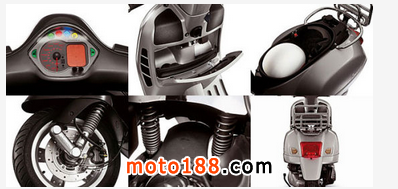 在細(xì)節(jié)上,GTS 250更加體現(xiàn)出意大利的風(fēng)情與創(chuàng)意,鍍鉻反光鏡、標(biāo)志以及一些小裝飾件,使人想起Vespa起源時(shí)的復(fù)古情調(diào)。而現(xiàn)代元素也沒有被遺忘,例如時(shí)尚儀表盤,發(fā)動(dòng)機(jī)狀態(tài)指示燈、機(jī)油指示燈等,讓騎士一目了然。全新設(shè)計(jì)的后座腳踏,也讓人有種眼前一亮的感覺。