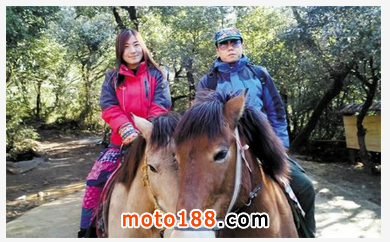核心提示:一月十二日,于鵬和周亞玲在麗江拉市海的茶馬古道騎馬留念在各種浪漫的愛(ài)情故事中,摩托車(chē)上的愛(ài)情最讓人神往。因?yàn)橹挥性谀ν熊?chē)