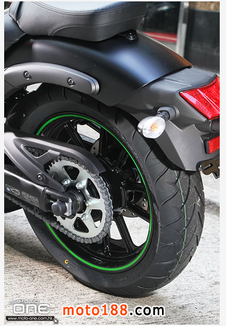 街車式的VULCAN S由于取自2015 VERSYS 650的車架,因此保留了臥式的尾避震,配備長尾擔(dān)及更大傾角的前避震,結(jié)果是更長的1,575mm軸距,是典型美式巡航車的設(shè)定,而有更佳重心的中置式 排氣管設(shè)定卻十分罕見,這結(jié)構(gòu)是源自VERSYS 650的車架設(shè)計。舒適性方面,闊轪把、又闊又低矮座墊不用多說,三段式可調(diào)前后位置的腳踏方便不同身高騎士尋找舒適的座姿駕駛。