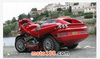 最牛X的是,設(shè)計者還將車輛的前臉和尾部進(jìn)行了一體化處理,形成一種跑車與摩托“你中有我,我中有你”的效果。