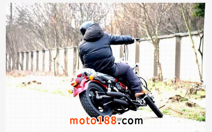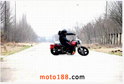 太子車的重心通常是偏前的,車手居然也做出翹頭動(dòng)作!表明域火配置的這款并列雙缸250cc引擎,其爆發(fā)力還是不錯(cuò)的。
