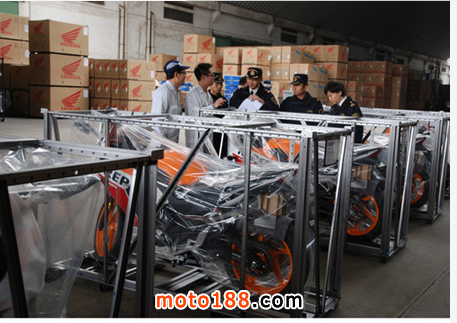 近日,在五羊-本田摩托(廣州)有限公司(下稱五羊本田)特設(shè)的海關(guān)外驗(yàn)倉庫內(nèi),832輛進(jìn)口大排量摩托車CBR300整齊碼放著等待查驗(yàn),這批價(jià)值人民幣三千余萬元的高端摩托車。即將通過增城口岸首次登陸中國。