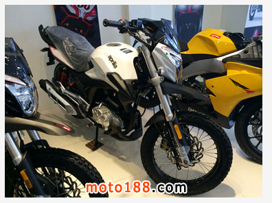 這部 ETX150 并沒有出現(xiàn)在廠方于歐洲市場的銷售網(wǎng),其使用一副風冷四沖程單汽缸兩汽閥的發(fā)動機,Keihin 的化油器,波浪形碟式的前制動、17 英寸直徑的鋼線式車輪,車身采用了街道越野的造型風格。在其中一個陳列室看到的部分展示車,還貼有中國國家商檢局的一些特有標簽,再參考其發(fā)動機的外觀,完全不排除是比亞喬集團(艾普利亞的母公司)在中國代工生產(chǎn)的產(chǎn)品。這款 ETX150 在當?shù)厥袌龅墓剂闶蹆r是 2,250 美元(稅后價格)。當?shù)氐哪ν熊囘M口稅綜合稅率約為 50%,估計除稅的裸車價格約為 1,400 美元左右、折合人民幣約 8,800 元。