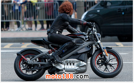 在拍攝時(shí),“黑寡婦”正坐在一輛摩托車(chē)上飛速行駛,看起來(lái)像是哈雷車(chē)款,除了油箱上明顯的Harley Davidson字樣之外,以及哈雷車(chē)系使用的卡鉗樣式,表明了這就是一輛哈雷機(jī)車(chē)。