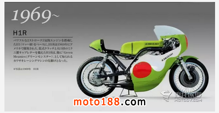 川崎H1R是為了參加500cc格蘭披治大獎賽而設(shè)計的,基于川崎H1街道版,兩沖程三缸發(fā)動機(jī)。1970年Ginger Molloy以第二名完成賽事,僅次于駕駛MV奧古斯塔的傳奇人物阿古斯蒂尼。