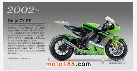 川崎為了登上GP舞臺,研制了ZX-RR賽車,首次亮相是在2002賽季,車手是柳川明。2004年, 中野真矢加入車隊,并登上了日本大獎賽季軍。2007年,蘭迪德普捏在日本拿下第二名。2008年賽季結(jié)束,ZX-RR隨著川崎車隊一同退出MotoGP舞臺。