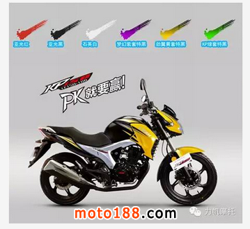 與上一代KP相比,新款KP外觀進行了升級,亞光黑、亞光紅、石英白、夢幻紫、勁翼黃、KP綠等六種全新的配色貼花,其中單色配以質(zhì)感細膩的亞光烤漆,外觀更加時尚、奪目,高度的酷炫感、質(zhì)感一目了然,足以滿足車迷對色彩的不同需求;前擋泥板上新添的KP2015標志,更加體現(xiàn)出KP獨有的個性化。