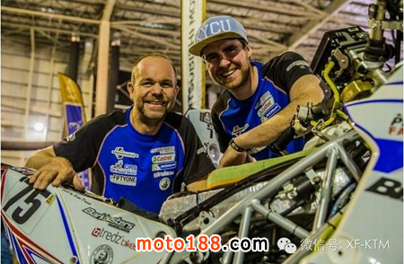 達(dá)喀爾拉力賽是世界上影響力最大的比賽。并且經(jīng)常會(huì)發(fā)生一些有趣的故事。今年是私掠船船長西蒙第十次參加達(dá)喀爾比賽,他23歲的兒子盧埃林是第一次參加。盧埃林與他的車隊(duì)SP FiFTYONE在9295km 競賽中初次登場。在布宜諾斯艾利斯比賽之前KTM博客采訪了盧埃林他們的故事。
