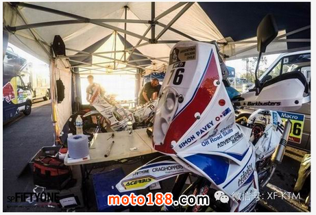 “我還想感謝來自英國KTM的肖恩西斯特龍。今年KTM參加達(dá)喀爾的比賽他給了我們很多幫助,實(shí)在不敢相信他會(huì)這么好。KTM騎行的美女你可以在比賽中把她簽下來。這會(huì)花一些錢,但它的包裝會(huì)吸引你把它買下。大概2000歐元,她們會(huì)很貼心的為你服務(wù)。是的,你必須購買它,但只并不意味著你不用擔(dān)心會(huì)帶來一下重復(fù)的東西。如果車出現(xiàn)問題她們會(huì)幫忙修理??梢詭偷胶芏嗝?,畢竟參賽者沒有辦法什么都自己做。這是一個(gè)很好的資源,我們非常感謝英國KTM的支持。”