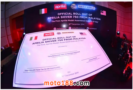 核心提示: Aprlia Shiver 750 CKD版本在馬來西亞吉隆坡皇家朱蘭酒店發(fā)布,這是Aprilia品牌在亞洲最具里程碑意義的事件。馬來西亞工業(yè)和