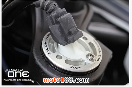 避震方面,KTM 1290 SUPER ADVENTURE前后均是WP全電子避震,並且分別有SOFT(柔軟)、STREET(街道)、SPORT(運(yùn)動(dòng))及OFFROAD(越野)四個(gè)吸震模 式供選用。這套避震使用避震行程感應(yīng)器、加速計(jì)(加速及減速反應(yīng))及車身傾則角度收集路面的數(shù)據(jù),電腦不斷改變避震的油壓,為騎士在行駛時(shí)提供即時(shí)最佳的 吸震效果,而類似的電子避震率先在BMW HP4上使用。