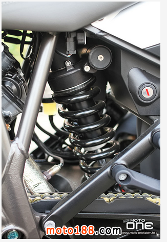 另一項(xiàng)類似四輪的裝備是油缸兩則的貓頭鷹射燈,車身傾角感應(yīng)器根據(jù)入彎角度,自動(dòng)調(diào)校 彎道的照明角度,可增加騎士在夜間轉(zhuǎn)彎時(shí)的行車視野。另外廠方在車身偷輕方面也下了很大功夫,官方數(shù)字隨時(shí)行車重量(注入了機(jī)油、散熱水箱水及迫力油等 等)是229kg,載滿30升汽油后的重量是249kg,以馬力/重量比例來說是同級(jí)之冠。官方數(shù)字還顯示30升汽油可行駛最少500km路程,但沒有公 佈行駛方法。