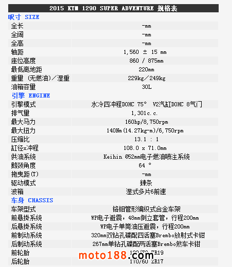 ●KTM 1290 SUPER ADVENTURE的V2引擎移植自KTM 1290 SUPERDUKE R,馬力由180hp下調(diào)至160hp,并使用新設(shè)計(jì)的引擎盤頂、曲軸及飛輪,加強(qiáng)線性馬力輸出。