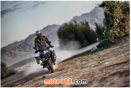 當(dāng)你帶上頭盔,耳邊傳來的其實只有渾厚而充滿力量的排氣聲浪以及各種等級的風(fēng)聲,這些都將陪伴你完成所有的旅程,所以它顯得至關(guān)重要。但將其完全忽略并不是什么難事,因為有更多的誘惑力隨著車輪的腳步接踵而至。R1200GS ADV善于制造驚喜,同時又是慢熱型選手,我的意思并不是它難以控制(與之相反,除了坐高外,它具有很強(qiáng)的親和力,極易控制),而是有很多強(qiáng)大且極具實用的功能等著你在各種困難面前挖掘、利用。