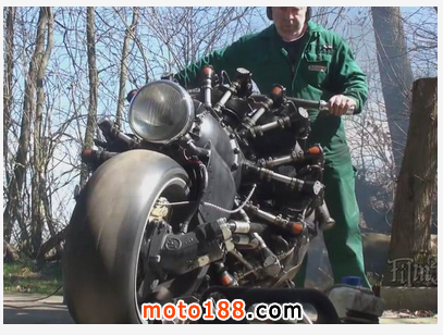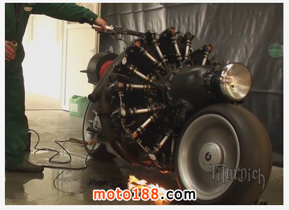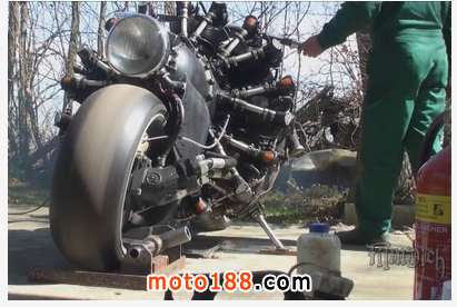 核心提示: 這款排量為11800cc的摩托車 其最高功率可達(dá)550 Bhp 9缸發(fā)動機(jī)來自螺旋槳飛機(jī)