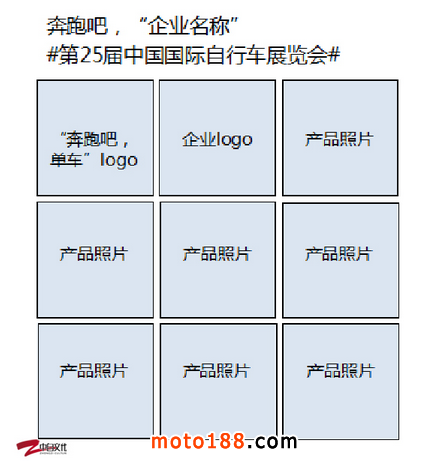 尋找XX企業(yè)的展位,拍攝8張該展位的圖片(其中一張為門頭),將8張照片和“奔跑吧,單車”活動的背景板照片一起,上傳微信朋友圈(如下圖所示),憑借微信朋友圈內(nèi)容、一張與企業(yè)展位的合影,到創(chuàng)新示范展獲取抽獎機會。