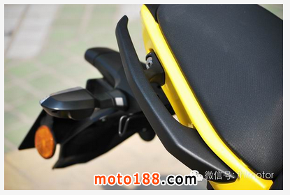 ER-6n的坐墊采用織物包裹,軟硬適中,再加上寬度合理,騎乘感受相當舒適。后座兩旁配以扶手,既可以改裝邊箱,又可以讓后座乘客抓握,相當人性化,也增加了美感。