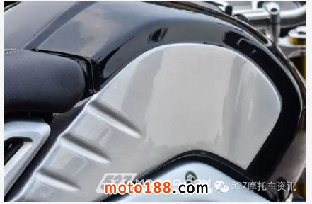 下圖為R nineT原廠油箱拉絲紋在不同光照條件下呈現(xiàn)的質(zhì)感