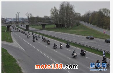 26日, 拉脫維亞摩托車愛好者在拉首都里加街頭駕車巡游。當(dāng)天,拉脫維亞首都里加舉辦了一年一度的摩托車巡游活動,慶祝又一個摩托車季的到來。拉脫維亞有大量的摩托車愛好者,但是這里冬季寒冷多雪,他們只能把心愛的摩托車收藏起來,而到了春暖花開的時候,再把愛車打扮起來進行巡游,慶祝摩托車季的到來。此次活動由拉脫維亞摩托車愛好者協(xié)會舉辦,共有30多個摩托車俱樂部的4000多輛摩托參加了巡游活動。