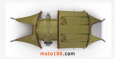 英國(guó)出生、軍人、冒險(xiǎn)家這幾個(gè)關(guān)鍵字成就了一個(gè) CEO——Kevin?Muggleton,他的人生中超過(guò) 4 分之一的時(shí)間都在「這么大的世界上走走」。這 20 年中,他幾乎坐過(guò)世界上所有的交通工具,但是毫無(wú)疑問(wèn),他還是最愛他的摩托車,旅行是他的血,而「家」則是個(gè)帳篷。所以他和他的隊(duì)伍發(fā)明了這個(gè)——Atacama 探險(xiǎn)摩托車帳篷,一個(gè)可以把摩托車放進(jìn)室內(nèi)的雙人帳篷。這個(gè) 23 英寸大的帳篷是一個(gè)三居室,當(dāng)然大屋必須是給摩托車住的,人可以睡在兩個(gè)小屋,不論你開的是哈雷、街跑或者越野,254×96 厘米大的車庫(kù)都可以放得開。