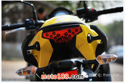 ER-6n的前臉看起來比較兇悍,四燈泡燈組的設(shè)計非常合理,上方兩個角的位置和中間位置為常亮燈,負(fù)責(zé)近光,下方一顆為遠(yuǎn)光/pass,總體看來為縱向排列。轉(zhuǎn)向燈在前臉中部兩側(cè),寬度合理。尾燈設(shè)計在尾座下方,LED燈組組成,形狀和Z1000的尾燈十分相似。