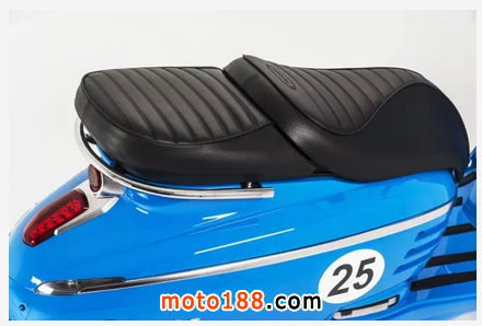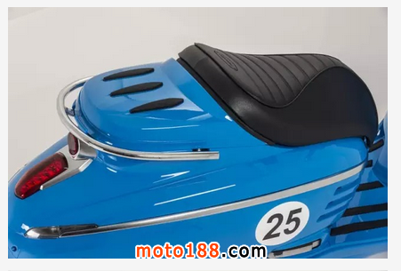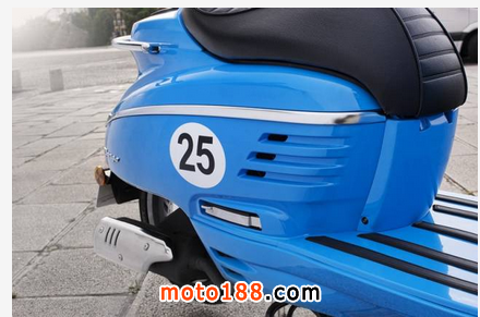 運(yùn)動版車身顏色為運(yùn)動韻味十足的愛琴海藍(lán),配置單人運(yùn)動型鞍座,車身有25號碼標(biāo)貼圖樣。25號是對標(biāo)致具有歷史紀(jì)念意義的冠軍戰(zhàn)車編號。