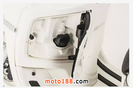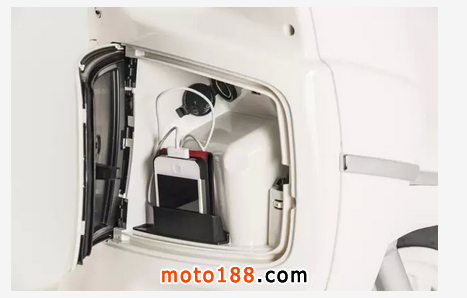 內(nèi)擋風(fēng)留有兩個可鎖式隱形儲物箱。左側(cè)的儲物箱有加油口,右側(cè)的儲物箱配置12V充電接口,內(nèi)部配置多種規(guī)格掛鉤,貼心創(chuàng)意空間。