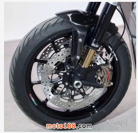 加滿油車(chē)重242公斤,考慮到車(chē)身安裝的巨大引擎,這個(gè)份量是非常了不起的實(shí)現(xiàn)。為了能夠達(dá)到這個(gè)了不起的輕量,車(chē)殼采用100%碳纖維,雙側(cè)排氣管采用Akrapovic定制4-into-2–into-1鈦制,車(chē)架采用Trellis編織式鉻鉗管車(chē)架,車(chē)身后部的副車(chē)架采用機(jī)械加工鋁合金副車(chē)架。