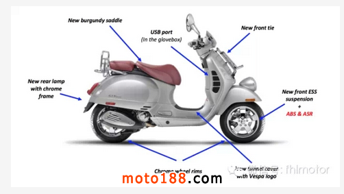 動(dòng)力方面車架與發(fā)動(dòng)機(jī)和GTS車系無(wú)異,USB接口插座同樣配備,而前減震采用全新的ESS懸掛系統(tǒng),前后ABS&ASR系統(tǒng)也是標(biāo)準(zhǔn)配置。