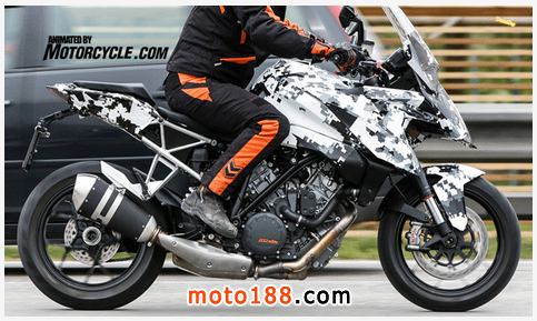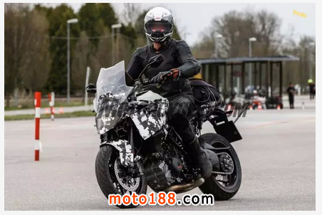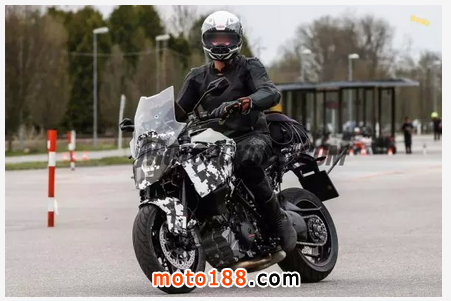 諜照圖片拍攝于奧地利 KTM 工廠附近的街道,從外觀上看加大了前整流罩和風擋,與“R”款相比有不少相似之處,然而30升的超級油箱容量卻與 Super Adventure 相同。預(yù)估動力調(diào)教將介于 Super Adventure(160匹馬力)和 Super Duke(180匹馬力)之間,電子設(shè)備的配置基本與 Super Adventure 大體相同,如 MSR、四段 MTC、HHC、SCU、C-ABS、RbW、TPMS、及 WP 懸掛半主動式調(diào)節(jié)系統(tǒng)等。