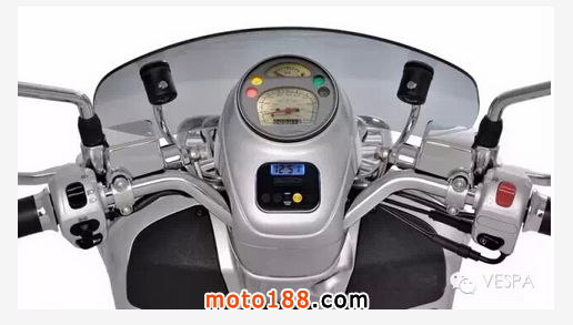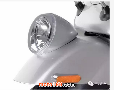 全新金屬銀灰色車身涂裝,讓GTV擁有非凡的優(yōu)雅質(zhì)感,視覺效果一目難忘。安裝在前擋泥板上的前大燈,以最早的VESPA設(shè)計(jì)為藍(lán)本,明示著VESPA的起源。大燈下移之后,車頭部分添加了鍍鉻行李架,而VESPA GTV的手把重現(xiàn)了最早期VESPA的金屬管飾面,在當(dāng)代摩托車中再次喚起流行風(fēng)潮。傳承經(jīng)典的方向柱蓋采用機(jī)械圓形儀表,油量顯示和時(shí)速表完全分開,下方還有單獨(dú)時(shí)間顯示和功能提示燈,讓人一目了然。