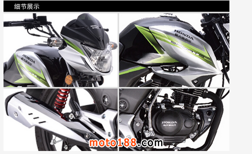 戰(zhàn)豹,車如其名,車身長瘦線條優(yōu)美如一只奔跑的豹子。立體雕塑油箱,美觀大氣很有肌肉感。大面積鍍鉻高效消音器實用而美觀。搭載CBF渦燃發(fā)動機,相信很多車迷對這款發(fā)動機并不陌生,這是一款純正本田科技的發(fā)動機,動力強勁平順,帶平衡軸使機器運行更加流暢,將整車的震動降到最低。戰(zhàn)豹還采用了電磁防盜、鋁合金腳踏,大盤雙活塞碟剎配備,都屬于主流。本田的品牌實力大家有目共睹,擁有不少忠實的粉絲。而該車做工、性能都屬一流,價格也在9000元以下,戰(zhàn)豹一出,必定會引爆市場。