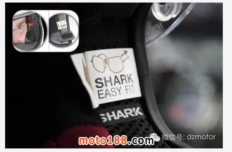 注重人性化設(shè)計(jì)的SHARK,為了方便佩戴眼鏡的騎士,配有眼鏡凹槽。