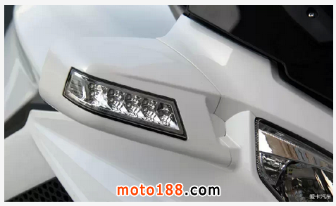兩個大燈,一個近光、一個遠光。下面6個LED是示寬燈,可以當日間行車燈用……