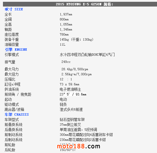 2014年HYOSUNG GD250N(X-5)街車抵港,挾著售價(jià)只是HK$36,800,俱有新牌轉(zhuǎn)波車市場(chǎng)有一定的殺傷力。上年抵港時(shí)共有黑、白、橙紅、藍(lán)四色登場(chǎng),唯獨(dú)欠了廣受市場(chǎng)歡迎的大紅車身。今年,2015 HYOSUNG GD250N 順應(yīng)車迷要求,推出鮮紅油缸、車架與后座裝飾,并配上啞黑與亮黑的車手部件,紅與黑的配搭份外鮮明搶眼。