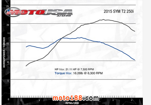 撇開(kāi)車型外觀不談,T2與CBR300R最為相似。兩臺(tái)機(jī)器同樣搭載了六速變速器,單缸水冷四氣門電噴發(fā)動(dòng)機(jī)。發(fā)動(dòng)機(jī)性能方面,T2在7500轉(zhuǎn)的時(shí)候功率可達(dá)到最大為21.11HP,而扭矩在6300RPM時(shí)達(dá)到最大為16.26lb。