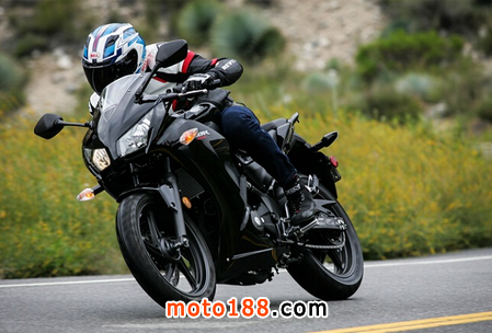 CBR300R的最佳狀態(tài)在6500轉(zhuǎn)到8500轉(zhuǎn)之間,期間,300R將為你表現(xiàn)出它最好的一面,流暢可靠的六速變速箱配備很輕的離合使你總能找到一個(gè)最佳點(diǎn),快速換擋只是一瞬間的事,即使你忘記減檔入彎,CBR300R仍然有足夠的動(dòng)力來(lái)挽救你的錯(cuò)誤。另一方面,CBR300R的排氣聲音讓人喜愛(ài),這對(duì)于單缸機(jī)來(lái)說(shuō)有點(diǎn)意外。聲音轟鳴有力卻不嘈雜。