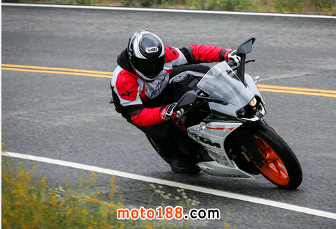 RC390的變速器在騎手主觀評(píng)估排名中位列第二,變速箱和驅(qū)動(dòng)桿的性能表現(xiàn)完勝本田。在底盤和車把方面,KTM稍遜于其他品牌,測(cè)試組人員將其排在雅馬哈和本田之后。但是車身前端能承受更大重力,使得車身在出彎時(shí)更為靈活敏捷,這倒不失為好的一面。