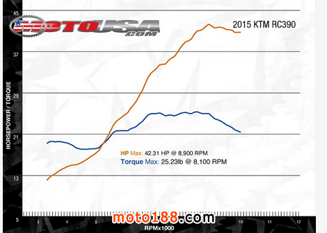 首先,375cc的發(fā)動(dòng)機(jī)的引擎是目前同級(jí)別中排量最大力量最強(qiáng)的。峰值期間,水冷單缸發(fā)動(dòng)機(jī)在8900轉(zhuǎn)的時(shí)候可以輸出42.31匹馬力和25.34磅— 英尺的扭矩,比排名第二的雅馬哈R3多出5磅-英尺。其從底部發(fā)出的轟鳴聲要強(qiáng)于三陽(yáng)、川崎和本田品牌的車型,與其他車型相比,KTM的那立竿見(jiàn)影的馬力輸出讓人滿意,其出彎速度和直線加速時(shí)間更令人難以抗拒。