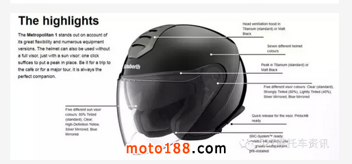 M1最獨特的風格是其具有廣泛的個性化定制空間。騎士們可以定制自己的頭盔,以滿足其日常需要和個性風格。頭盔外觀會有七種時尚的顏色可供選擇。除了經(jīng)典的維也納白和柏林黑,還將包括:巴黎藍,馬德里金屬色,倫敦亞光黑,羅馬紅和阿姆斯特丹無煙煤。