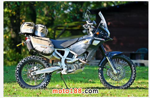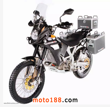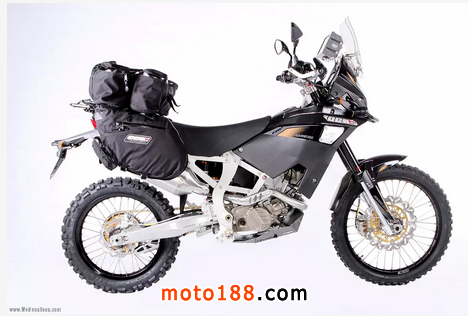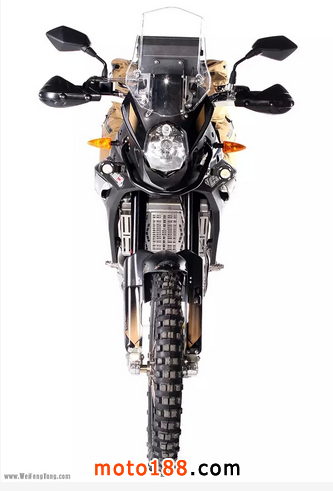 現(xiàn)在正式將產(chǎn)品推出了市場:2015' GP450 Adventure。該車采用一副來自 BMW G450 系列的單汽缸發(fā)動機,最大馬力輸出被限制在 40 匹(可使用軟件調(diào)整 ECU,重新設(shè)定至最大的 50 匹馬力輸出)。車身采用鋁合金的車架,20 升大容量的油箱,前21、后18英寸的車輪,長行程的前后懸掛。