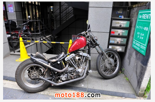 當(dāng)我看了太多的本田黨之后開始感覺到有些視覺疲勞了,在原宿街頭漫步的時候,路邊的哈雷Panhead吸引了我的注意。從車子的整潔程度可以看得出車主對其愛護有加,發(fā)動機殼體上些許的綠色銅銹也是恰到好處,背景玻璃上的文字“The Filth and The Fury(污穢與憤怒)”與這臺摩托更是相得益彰。