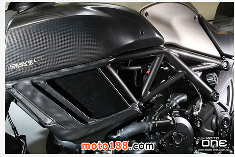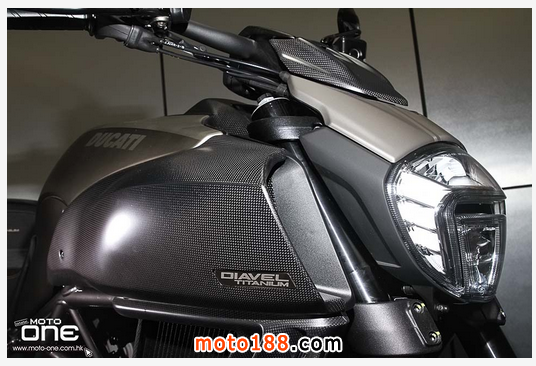 至於DIAVEL Titanium鈦合金版有甚么特別?正如她的型號(hào)一樣,油缸外殼及頭燈罩均是採(cǎi)用鈦合金製造,并於車(chē)身多處採(cǎi)用輕量的碳纖維部品,DIAVEL Titanium凈重為205kg,與標(biāo)準(zhǔn)版210kg偷輕了5kg,顯示出鈦合金與碳纖維的優(yōu)質(zhì)之處。而左右側(cè)置式散熱水箱保護(hù)蓋及入風(fēng)口的體積也較其 她版本闊大,加強(qiáng)了車(chē)頭的肌肉感??p制精美的座墊配以TITANIUM(鈦合金)的徽章,碳纖制尾乘客的座蓋也是重新設(shè)計(jì),其較闊的面積與車(chē)頭的入風(fēng)口互 相呼應(yīng)。L2引擎的黑色排氣管採(cǎi)用了陶瓷涂裝(Ceramic coating),尾截的消聲器配以掃漆紋的不銹鋼。