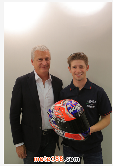 意大利品牌 Nolan 早前邀請了前 MotoGP 世界冠軍、澳大利亞車手斯通那,一道發(fā)布了新的 X-802RR Carbon 頭盔?,F(xiàn)場并展示了將于下個(gè)月在日本舉行的鈴鹿八小時(shí)耐力賽中,斯通那屆時(shí)將配戴其圖案的 “ 斯通那2015 ” X-802RR Carbon 頭盔登場。
