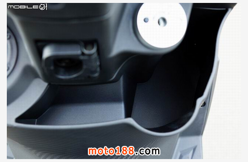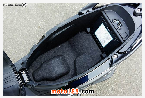 中央置物箱與鎖頭部分,左方的油箱蓋采用新的 SANYANG 商標(biāo),舍棄以往 SYM 的商標(biāo),中央置物空間有特別針對(duì)大體積保特瓶進(jìn)行設(shè)計(jì)。