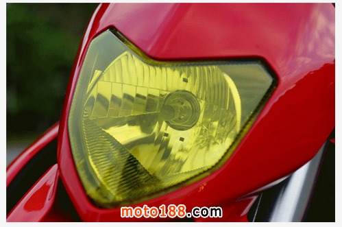 大燈與土除整合成一區(qū),大燈下方的進(jìn)氣口無實(shí)質(zhì)用途,僅為造型裝飾用,而大燈的鏡片本來是透明的,車主有請車行委讬貼上燈模,借此改變燈泡色溫,在夜晚的山路比較能夠破霧。