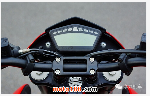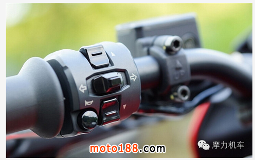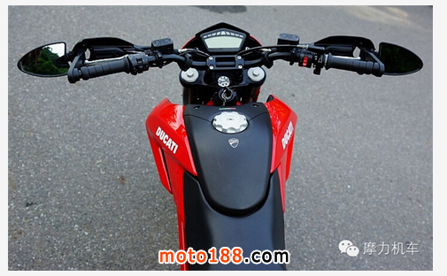 接著看到中央的部份,把手固定蓋采用簍空的一體件,而位于把手上方的,則是 Hypermotard 796 的儀表板,外觀可見完全無按鈕設(shè)計(jì),且無指針,因此是全數(shù)碼的儀表板。